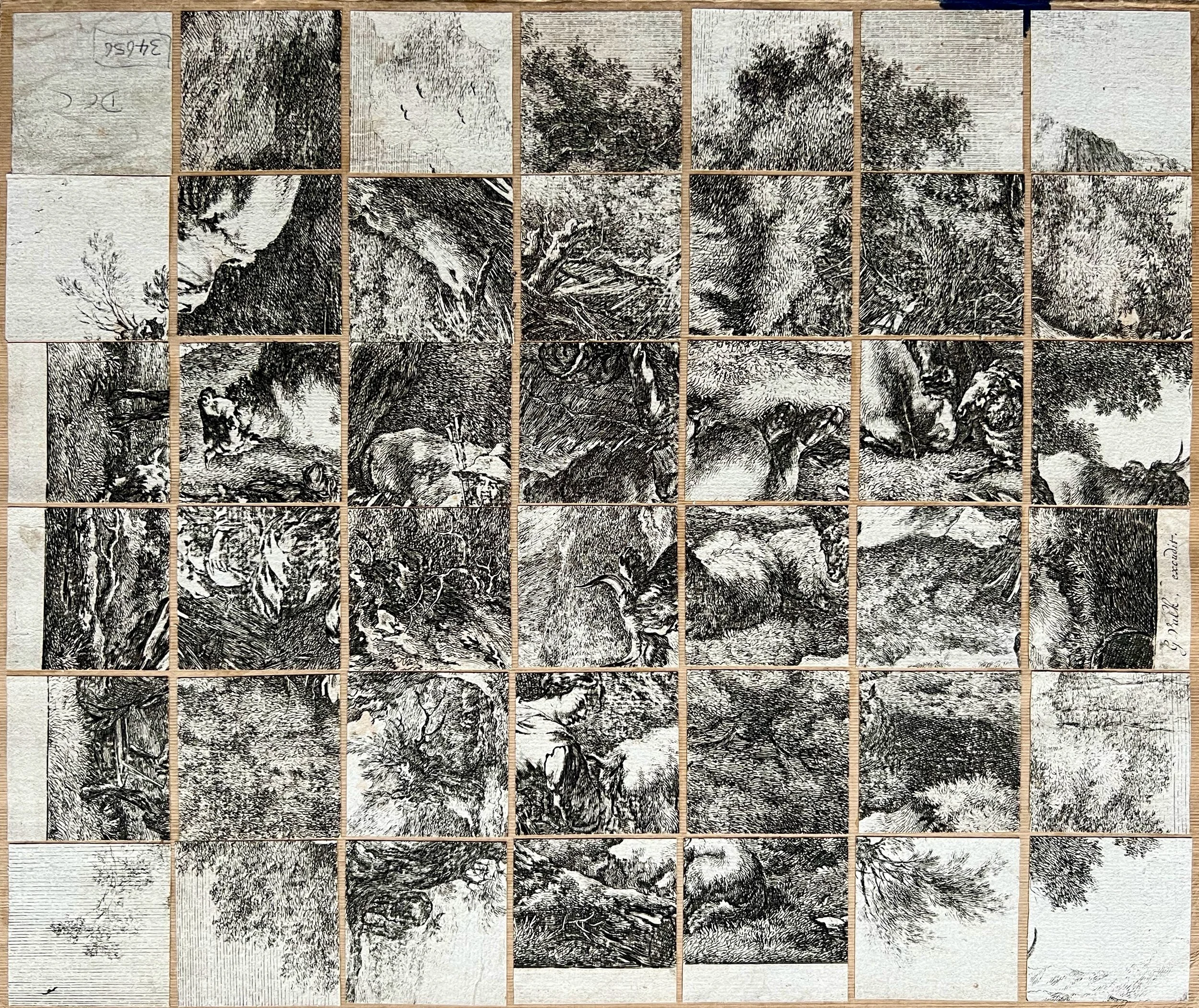 collage, antique engraving on board