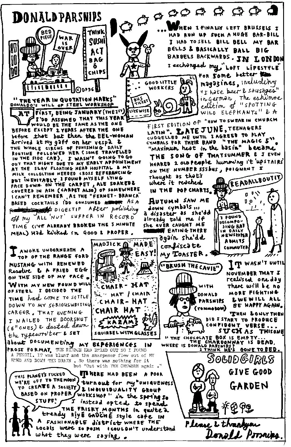 The Ditch issue 4Winter 1996Charlotte Road Shoreditch London EC2A Donald Parsnipsaka Artist Adam Dant Cedric Christie | one direction Diego Ferrari | panoramic portraitsartists Georgie Hopton and Gary Hume centrefold | Tammy Whynotphotographer: Anthony Olivermodel: Zeke Manyikamake-up & styling: Sharon Dowsett Hamish Patelaka artist Michael Kerr Rüt Blees Luxembourg | photograph