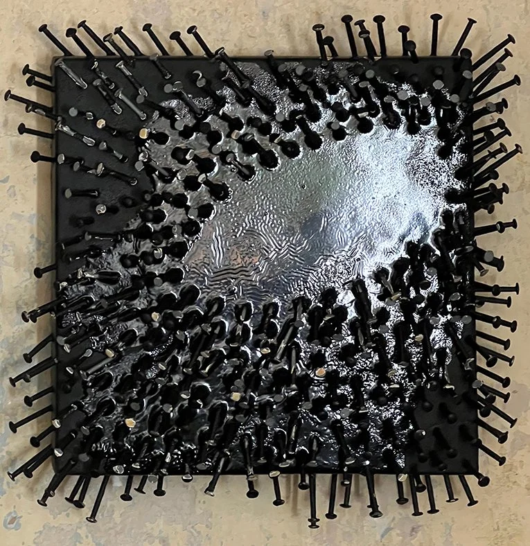 mixed media and nails on board