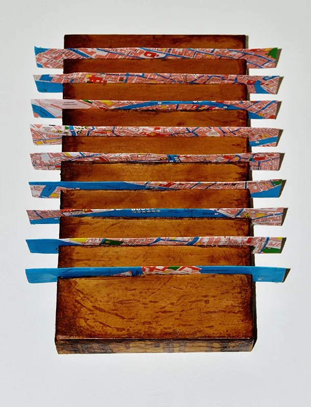 map, vintage paper and shellac on board